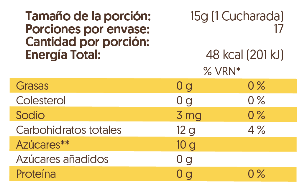 Consumila directamente o mezclada con té, jugos o postres.